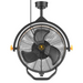 The 18" MULE Garage Fan XL (model 52016) is designed to hang on the ceiling of your garage/shop or any covered indoor or outdoor space due to its easy mounting system and 8' cord with 110V 3 prong plug, which means no hardwiring. This space-saving fan is engineered to provide optimum airflow with its 3-speed settings that top out at an industry-leading 5400 CFM (cubic feet per minute.) 360 degree rotation plus vertical adjustment allows you to position the fan anywhere you want for great airflow.