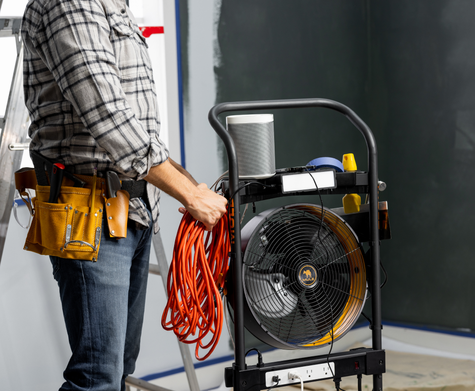 Cool It. Cool your work area. 14” 3-speed fan on wheels. 2500 CFM.