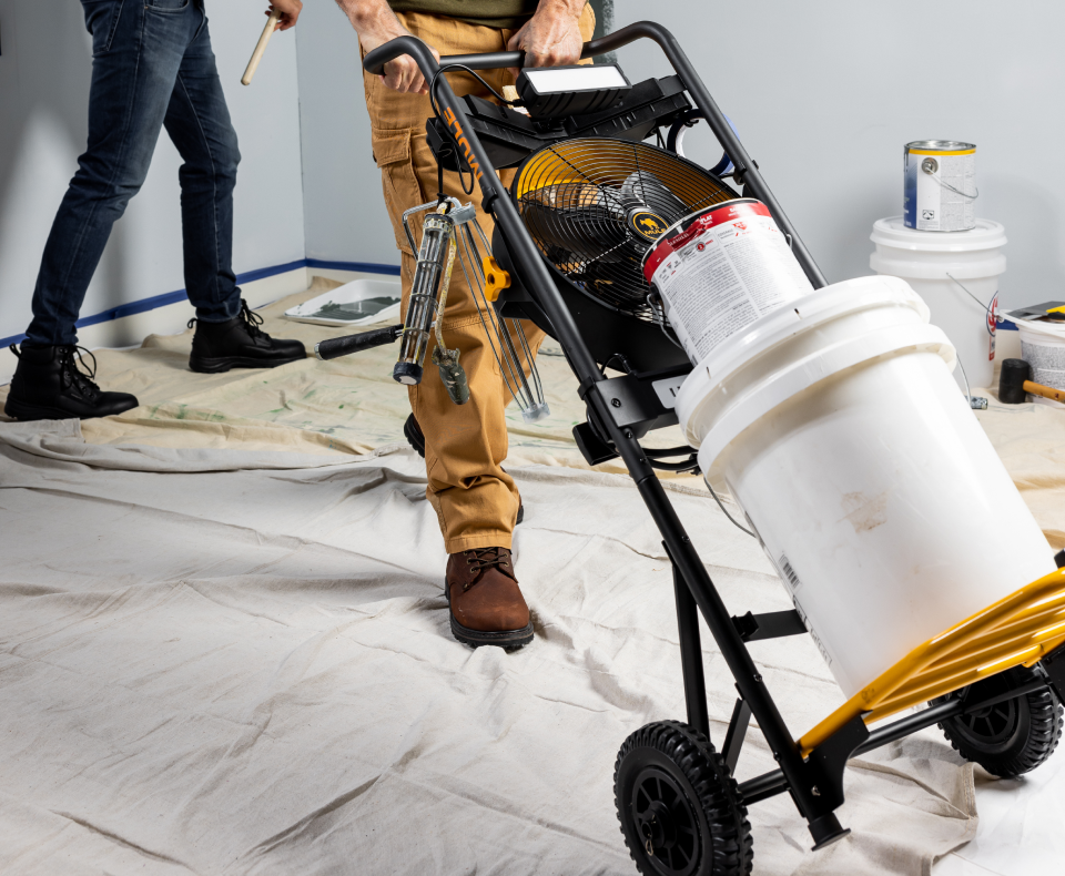 Cool It. Cool your work area. 14” 3-speed fan on wheels. 2500 CFM.